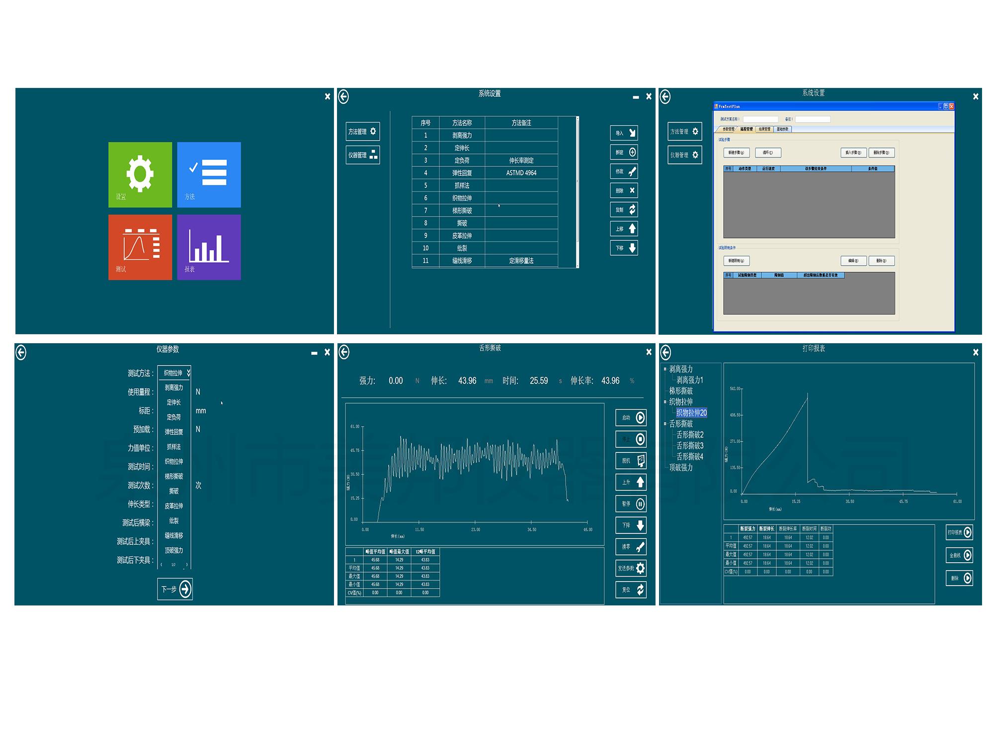 用于各種紡織品、非織造布、土工布、拉鏈、橡膠、鞋材、皮革、金屬、建材等材料的拉伸、撕破、頂破、剝離、定伸長(zhǎng)、定負(fù)荷、彈性回復(fù)、縫線滑移、模量、單紗強(qiáng)力等力學(xué)性能分析測(cè)試。