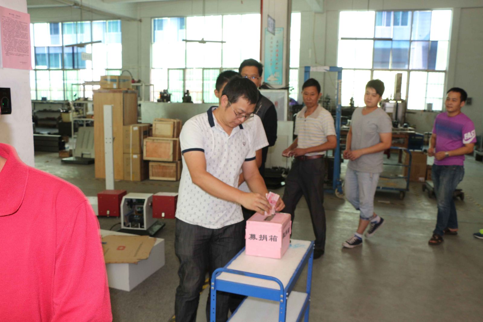 在一曲《愛的奉獻》樂曲聲中,捐款隊伍緩緩走向募捐箱。公司總經(jīng)理彭銳和四位股東率先分別捐贈500元,公司管理人員和員工也紛紛慷慨解囊,你五百,我四百,他三百··· ···遠在駐外辦事處同志,特意打電話回來交代在場同事代為捐款,所有美邦人都將一份份滿懷深情的愛心、親切的關懷投入到募捐箱中,默默祈禱劉父早日康復。此次活動,共捐得善款10000元,主要用于技術部劉尾父親身患肺癌的救助。