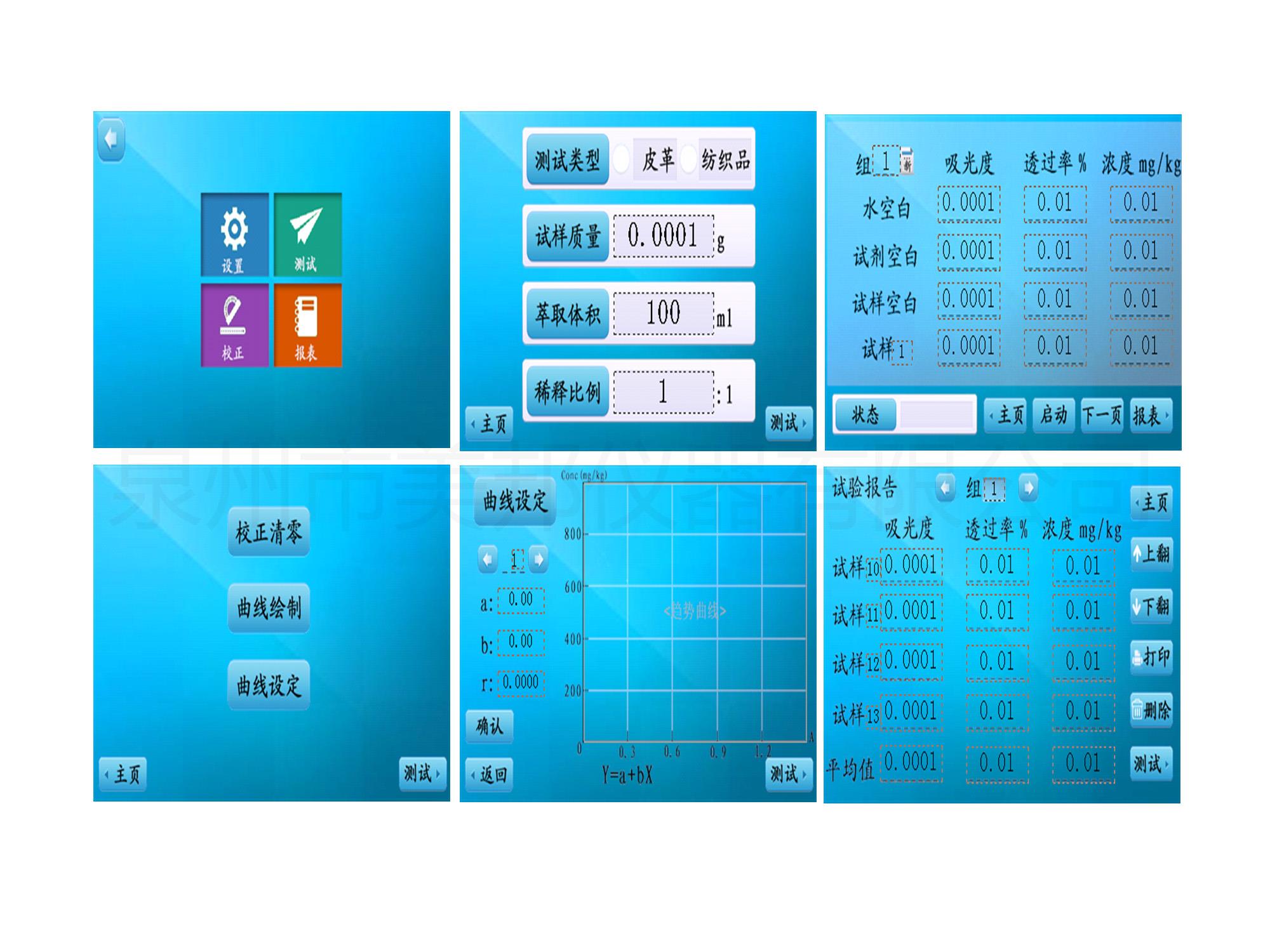 5、主機可以做8多條試樣標準曲線功能;曲線計算采用離散計算方法,直接顯示a、b值及曲線(標準曲線y=a+bx),無需人工計算。