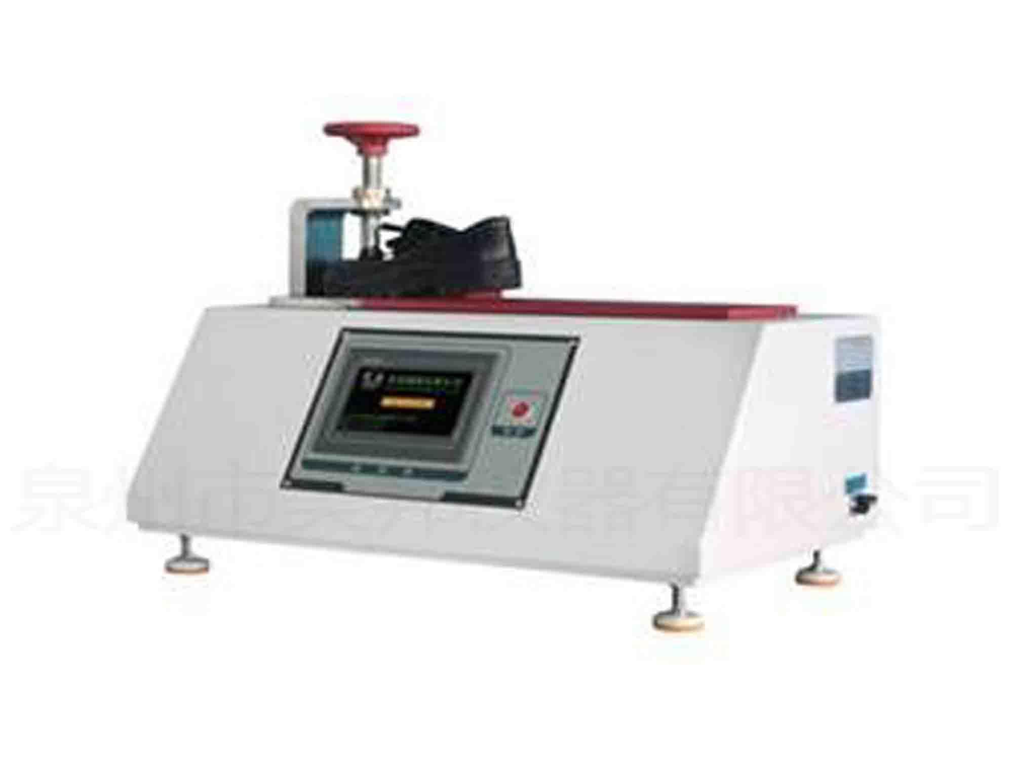 This machine is used to test the bending resistance of finished shoes. The bending resistance of the shoe material is evaluated by testing the required force value or reaching a certain force when the shoe is tortuous to a certain angle. The high precision decoder is used to read the angle value accurately, and it has the fast back function.
